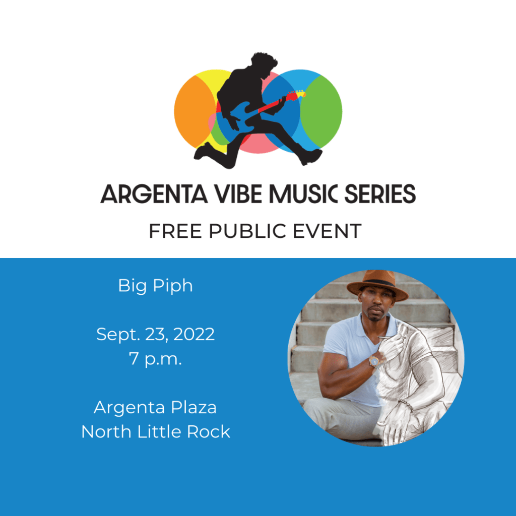 NORTH LITTLE ROCK (Monday, September 12, 2022) – The Argenta Downtown Council and the North Little Rock Convention & Visitors Bureau will host Argenta Vibe Music Series featuring Big Piph and Tomorrow Maybe at Argenta Plaza at 510 Main Street in North Little Rock on Friday, September 23, 2022, at 7 p.m.