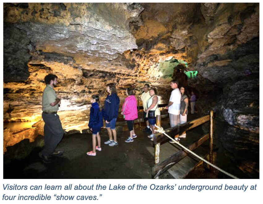Additionally, the Lake of the Ozarks’ four spectacular “show” caves offer intrepid explorers and first-time cavers an entertaining way to learn about geology, hydrology and anthropology while discovering the underground beauty found at the Lake of the Ozarks.