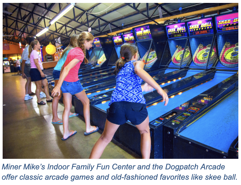 Visitors looking for an old-fashioned arcade experience will appreciate a stop at the Dogpatch Arcade located near the Dogpatch store, the Lake’s original kitschy souvenir shop. The Dogpatch Arcade, located on the Historic Bagnell Dam “Strip” in Lake Ozark, keeps vacationers entertained with old-school skee ball machines and other arcade classics as well as video games, simulators and more.