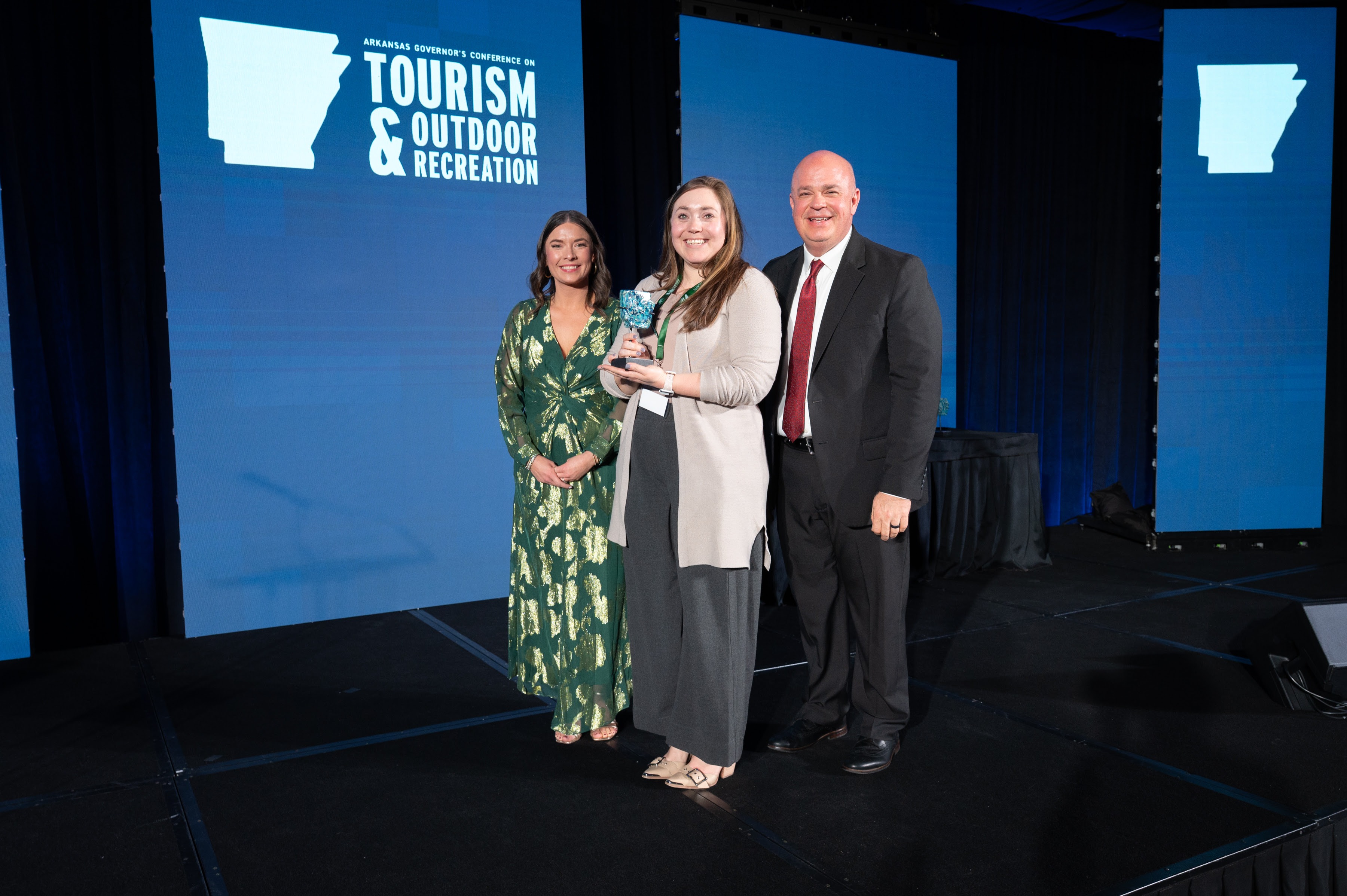 Dalaney Thomas, Arkansas Tourism Director; Visit Bentonville members, Tourism Organization of the Year; Sec. Shea Lewis, Arkansas Department of Parks, Heritage and Tourism