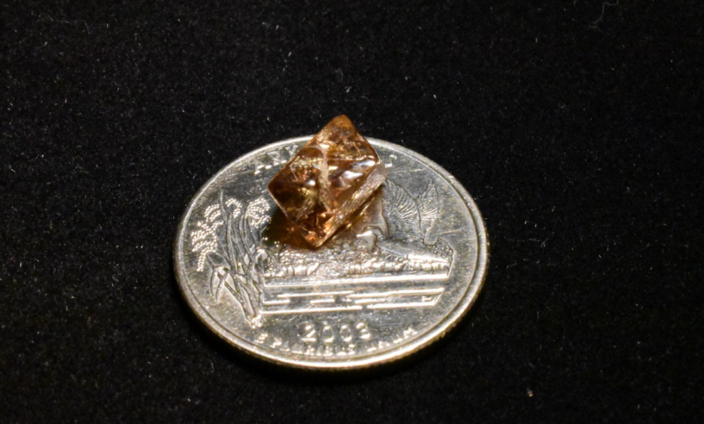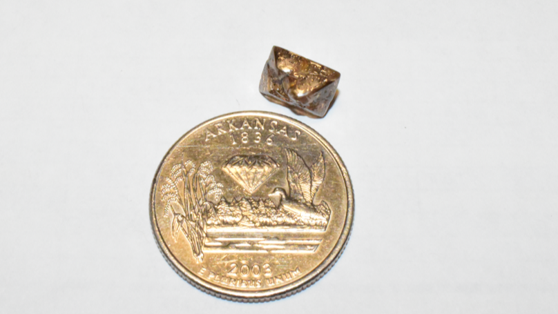 The 3.81-carat diamond has a metallic, copper luster and a blocky, triangular shape. Many visitors choose to name the diamonds they find at Crater of Diamonds State Park. DeCook decided to name his gem The Duke Diamond, after his dog. DeCook states that at this time, he is not sure what he will do with his diamond.